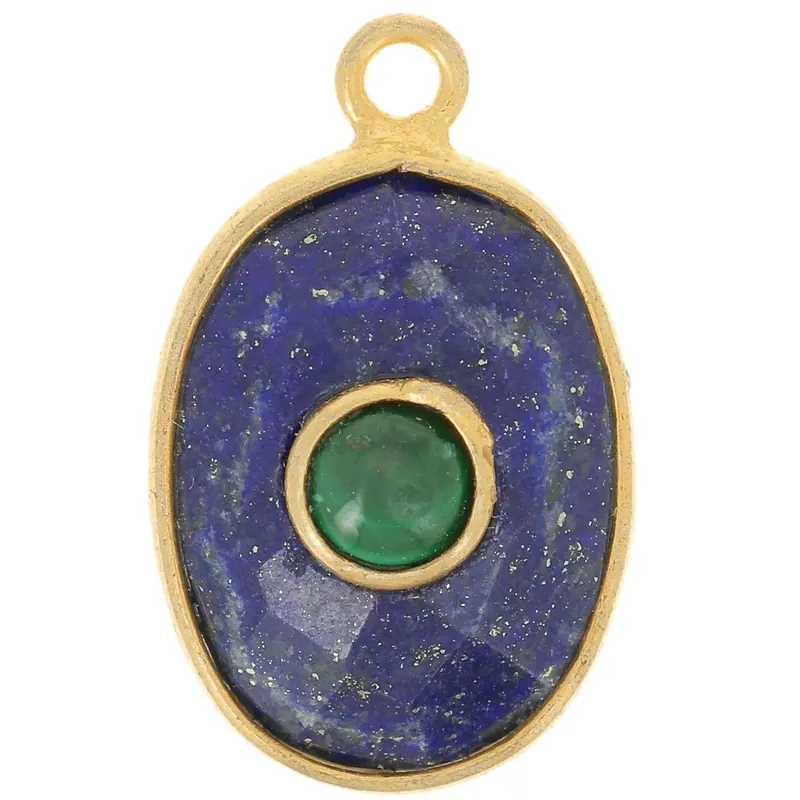 Achetez Aujourd’hui Pendentif ovale facetté 18.5×11.5 mm – Doré à l’or fin – Lapis lazuli – Malachite
