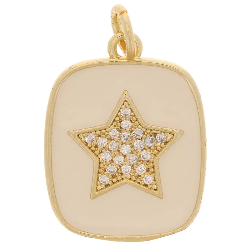 Achetez Aujourd’hui Pendentif rectangle motif étoile en oxydes de Zirconium et résine époxy 19×15 mm – Doré – Nude