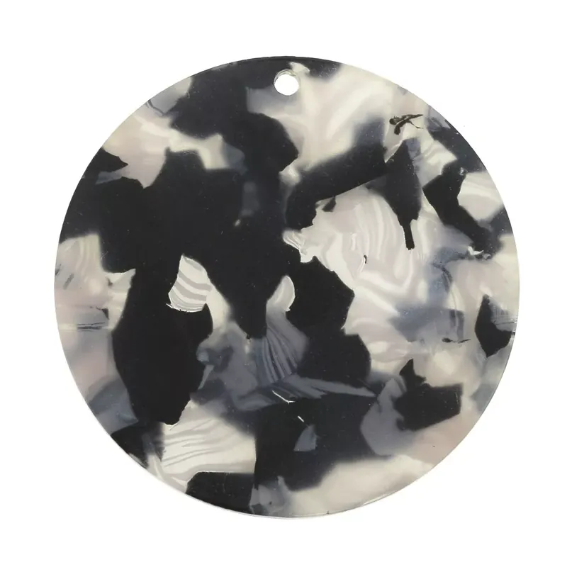 Achetez Aujourd’hui Pendentif rond en plexiglas 38 mm effet écaille de tortue – Beige / Noir x1