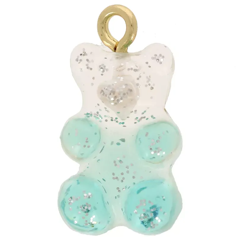 Affaire À Saisir Breloque bicolore ourson 20x11mm en acrylique transparent – Pailleté Rose – Bleu