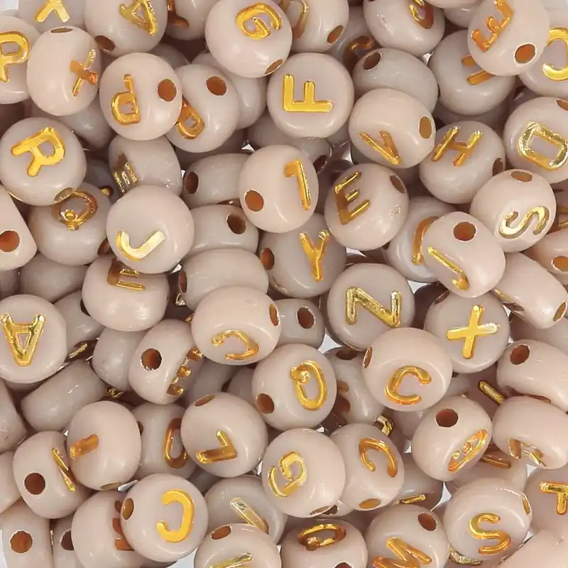 Affaire À Saisir Assortiment de 200 perles plates lettres alphabet 7 mm – Beige – Doré