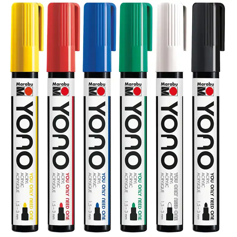 Commander Vite Marabu YONO Marqueurs acryliques, couleurs primaires, 6 marqueurs