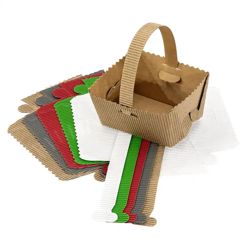 Dernière Chance Petits paniers à anses en carton ondulé, différentes couleurs, 12 x 14 cm, 10 pièces