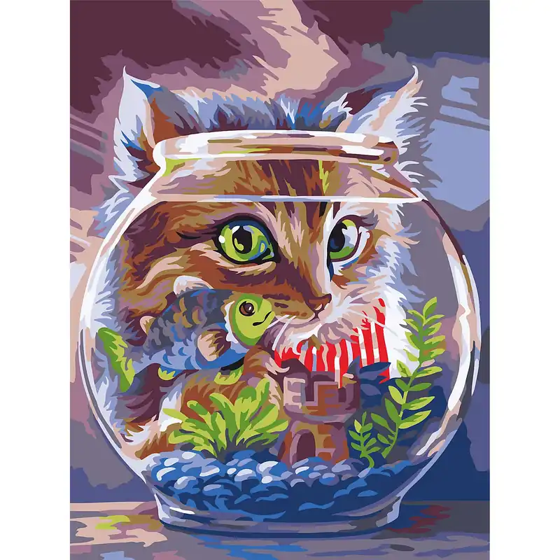 Dernière Chance Kit peinture par numéros « chat et poisson », 30 x 40 cm