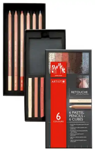 BOITE DE 6 CRAYONS PASTELS + 6 CUBES – ASSORTIMENT POUR RETOUCHES – CARAN D’ACHE Dernière Chance