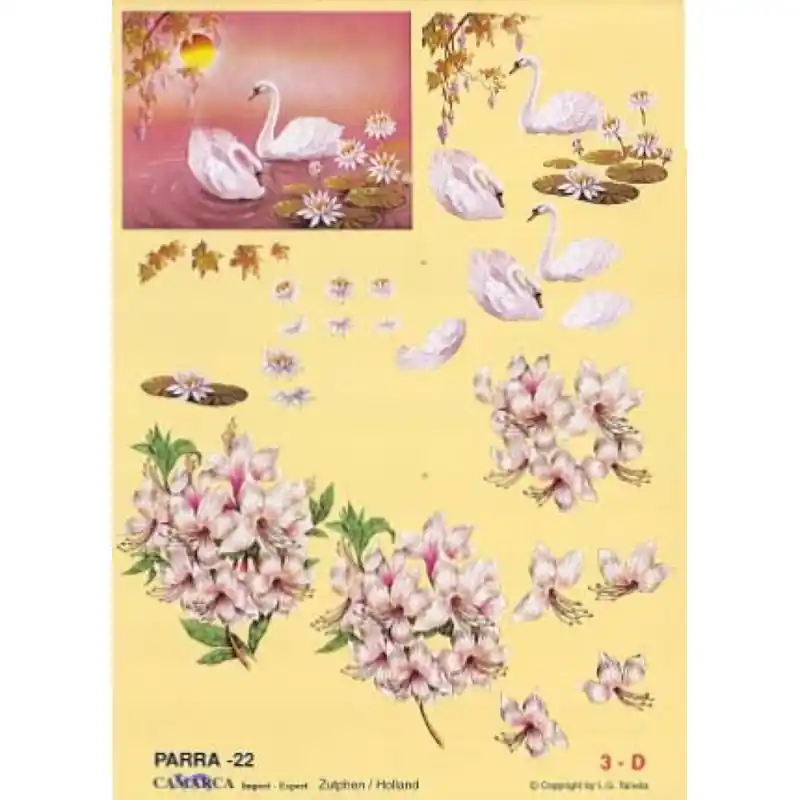 Carte 3D à découper – PARRA 22 – Cygnes et bouquets Édition Limitée