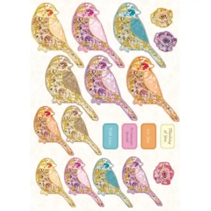 Carte prédécoupée – PCT1498 – Oiseaux colorés dorés Tendance