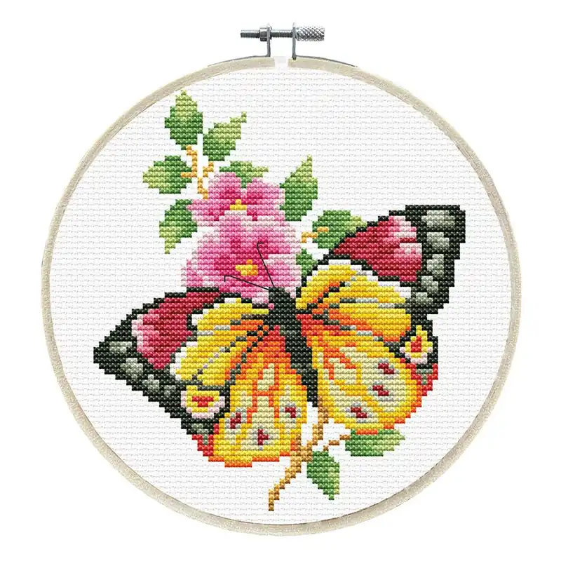 Kit point de croix imprimé avec tambour – Bouquet du papillon – Ladybird Bon Plan