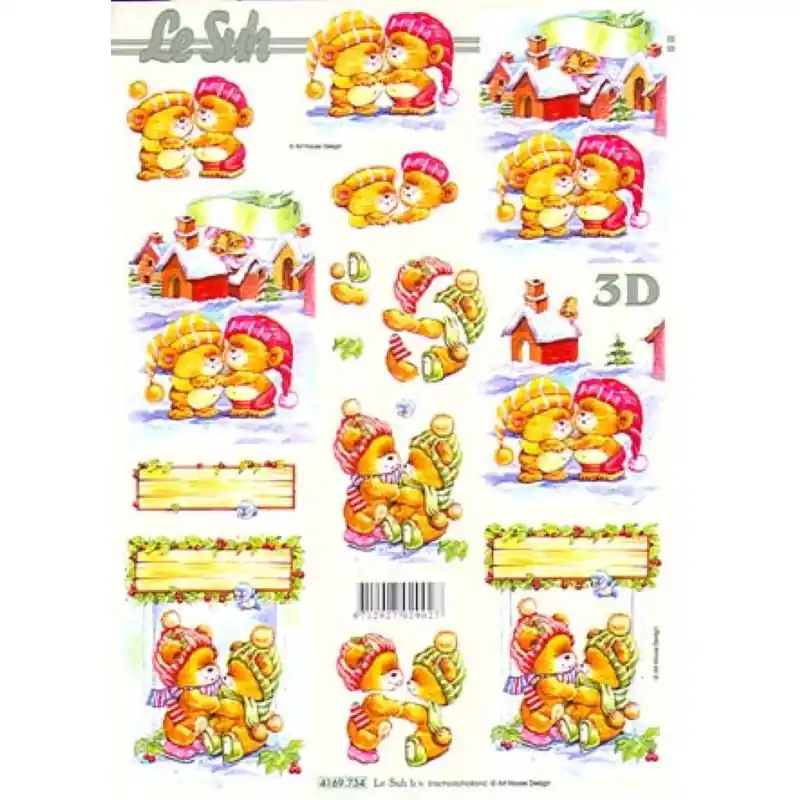 Expédié Aujourd’hui Carte 3D à découper – Ourson rose/vert s’embrassent – 4169734